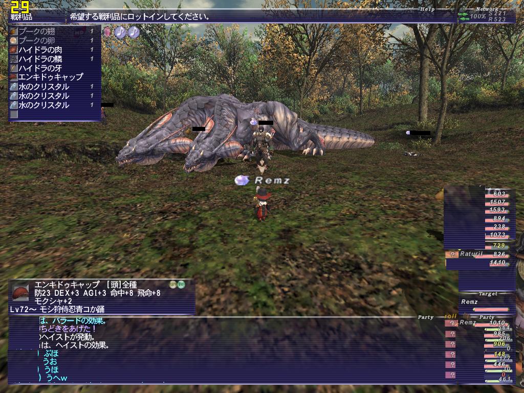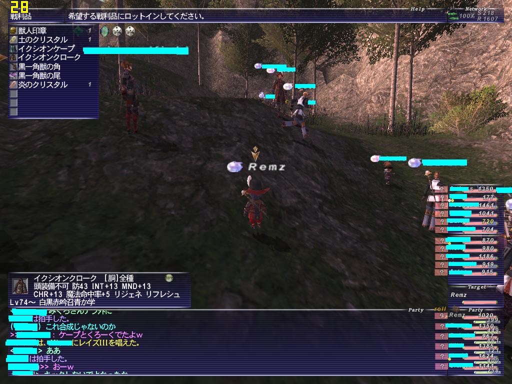 盾がイージス持ちx2だったり、ブラビューラな戦士様がいたり。アポカリ暗黒もいたんだけど、途中で侍に着替えてました なんというかほんとレベルの高い集団で、ほんとここにきてよかった! 前に居たLSとは大違いです!